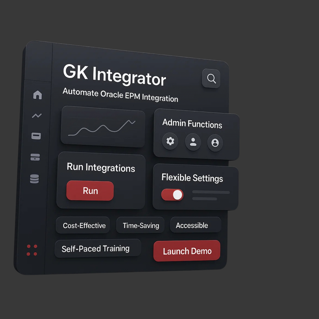 The GK Integrator is our purpose-built solution that simplifies and accelerates the way businesses connect SAP (including S4 Hana Public Cloud), and other enterprise applications with Oracle EPM Cloud.